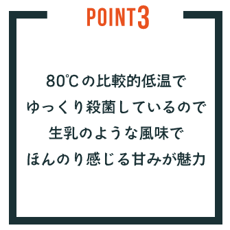 搾りたての牛乳をそのまま80℃で5分間加熱し、殺菌します。