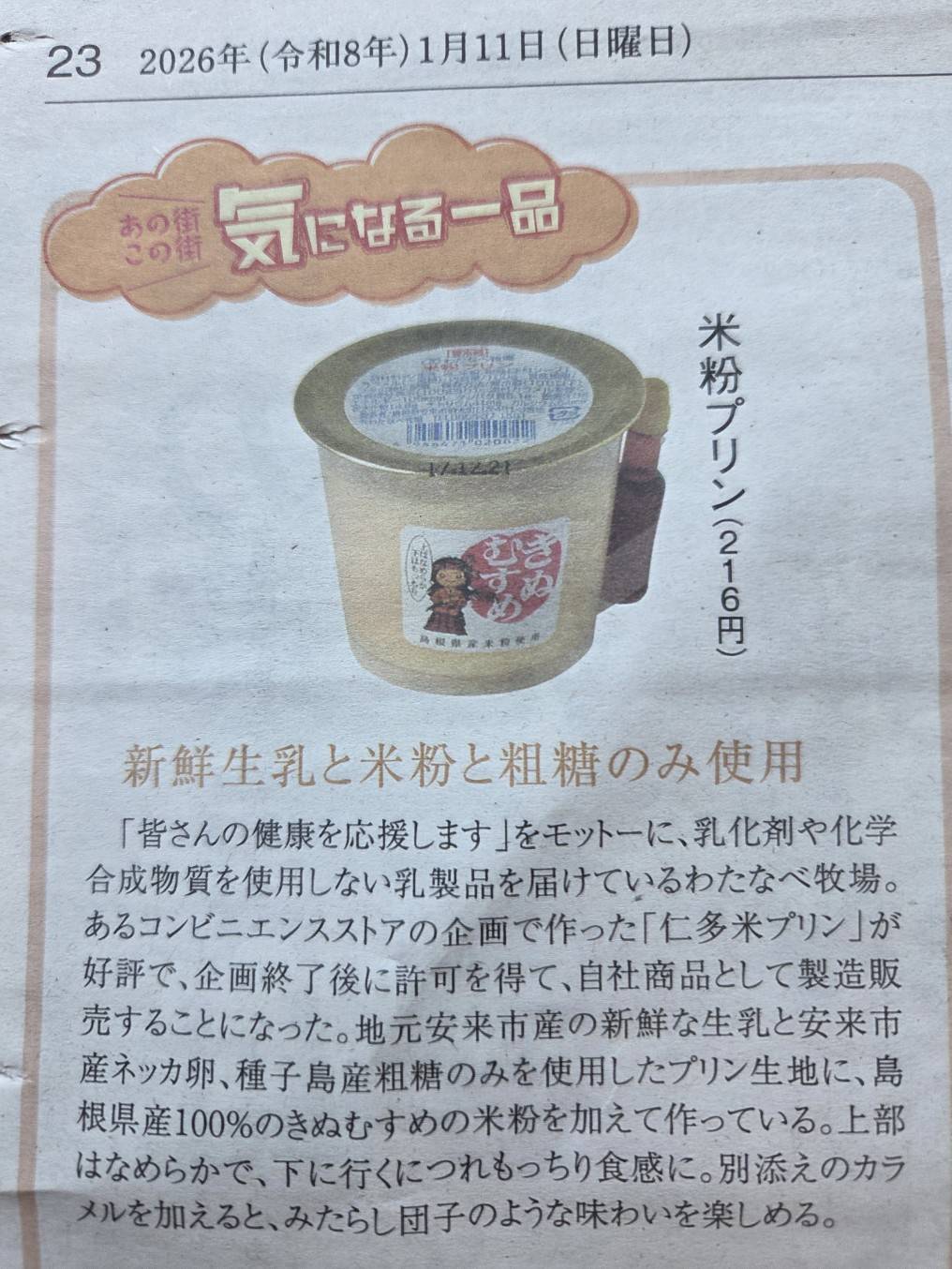 気になる一品コーナーに米粉プリンをご紹介頂きました。